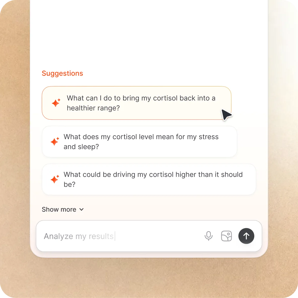 Use our AI Chat features to chat directly with your results and build a real understanding of how to make improvements to your biomarkers.