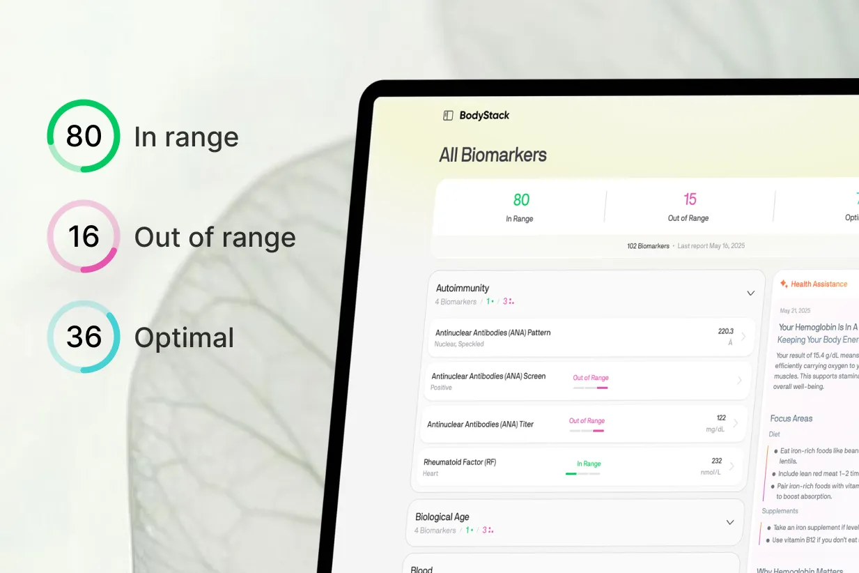 Bodystack is a personal health dashboard that helps you understand your lab results as a complete picture — not just isolated numbers.